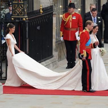 La cérémonie s’avèrera riche en surprises : la robe, également signée Sarah Burton, de Pippa Middleton, sœur et demoiselle d’honneur de Kate, dont la silhouette si parfaite a presque volé la vedette à cette dernière. Ou les grimaces de la jeune Grace Van Cutsem, enfant d’honneur goûtant moyennement le bruit des avions de la Royal Air Force volant au-dessus du palais royal. Sans oublier les détails : les talons vertigineux de Victoria Beckham, invitée au mariage et enceinte de 4 mois ; la robe jaune poussin d’Elizabeth II. Le chapeau «façon Loki avant l’heure» de la princesse Beatrice. Des images que personne, dix ans après, n’a oubliées.