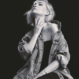 La volupté. Veste en denim, Levi’s, robe asymétrique, Maison Rabih Kayrouz. Bague Precious Lace, en or blanc et diamants, Chopard.