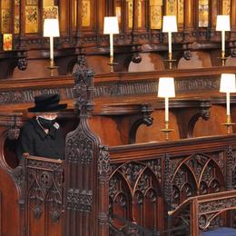 La reine Elizabeth II dans la chapelle Saint-George lors des funérailles de son époux, le prince Philip. (Château de Windsor, le 17 avril 2021.)