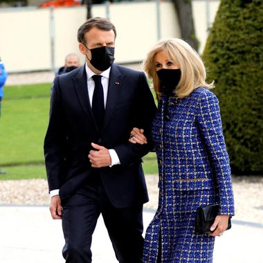 Brigitte Macron au bras de son mari sur le perron de la chapelle Saint-Jérôme, aux Invalides. Le président de la République et son épouse ont commémoré le bicentenaire de la mort de Napoléon, le mercredi 5 mai. Le couple, dont les apparitions se sont faites plus rares ces derniers temps, pandémie oblige, s’est recueilli sur le tombeau de l’empereur. Vêtue d’un manteau bleu en tweed à carreaux Chanel, Brigitte Macron se tenait aux côtés de son époux, alors qu’il déposait une gerbe de fleurs au pied de la sépulture.