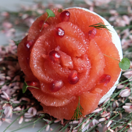 Pour la Saint-Valentin 2021, la boulangerie Sain reste fidèle à sa démarche engagée. L’enseigne aux produits exclusivement bio présente ainsi une magnifique «PavLove» aux fruits de saison. Difficile de ne pas être envoûté par ce pamplemousse rose déposé sur une coque en meringue pimentée au poivre du Sichuan, dans laquelle repose un crémeux citron ainsi qu’une mousse légère à l’aneth.