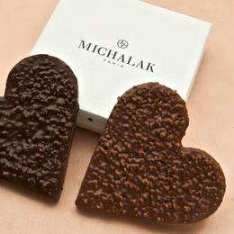 «Double cœur praliné» pour une double dose d’amour. C’est la promesse faite par Christophe Michalak aux amoureux. Au programme : deux pralinés gourmands, l’un à la noix de pécan avec enrobage chocolat au lait et l’autre à la noisette avec enrobage chocolat noir. Pour un moment de complicité exquis.
