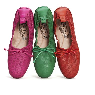 Ballerines «Happy Birthday» en cuir lisse et logo all over – Tod’s : Happy Moments by Alber Elbaz, 490 euros.
