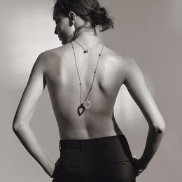 Collier Serpenti Viper, en or blanc et diamants, Bulgari, Sautoir Pretty Woman, en or rose et diamants, Fred. Pantalon Salvatore Ferragamo.