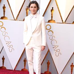 Timothée Chalamet en tailleur blanc Berluti pour la 90ème cérémonie des Oscars. (Hollywood, le 4 mars 2018.)